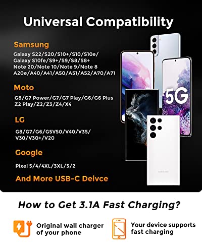 ✅【Tips for Fast Charging】This USB C cable alone WILL NOT provide you with fast charging alone. You need a fast charging USB charger and a phone that supports QC3.0 or QC4.0+ fast charging protocol.