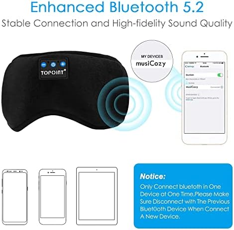 【Excellent Stereo Sound Quality】TOPOINT Sleeping Headphones Has True HD high fidelity sound featuring latest Bluetooth 5.0 technology that produce great sound quality and easily pairs with smartphones, computers, and most other Bluetooth compatible devices. Please you can move the position of the speakers to fit ears before use.