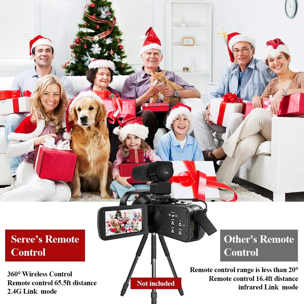 đ„ ăWith Microphone & Lens HoodăThe sound positioning of this camcorder with microphone is clear and stable. The built-in low-cut filter switch effectively reduces environmental interference and low-frequency noise. X-Y stereo sound pickup technology which makes the sound positioning clear. And the lens hood prevents stray light hitting the lens, improving image clarity and color reproduction. It comes with a 2.4G remote control which can control the camcorder wirelessly 360°from up to 20 meters!