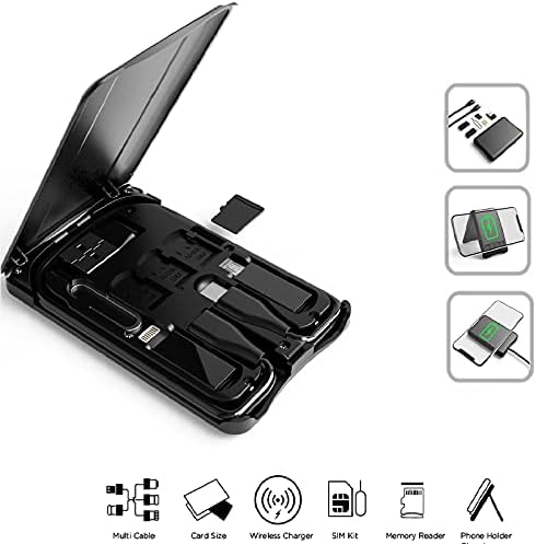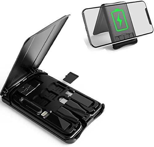Data Cable Box with Wireless Charger, Multi-Type Charging Cable Convertor, Multi-Function Wireless Charger Adapter, Built-in Card Reader, Can Use as Phone Holder
