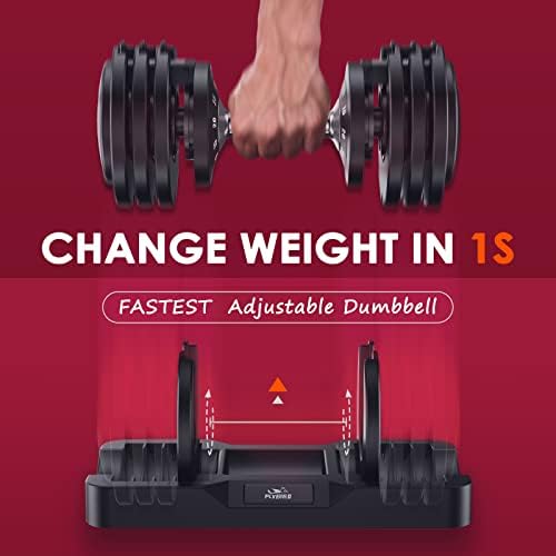 FLYBIRD Adjustable Dumbbell,25/50/55lb Dumbbell for Men and Women with Anti-Slip Metal Handle,Fast Adjust Weight by Turning Handle,Black Dumbbell with Tray Suitable for Full Body Workout Fitness