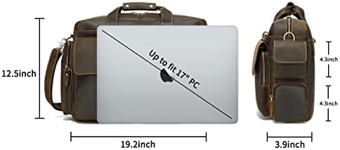 Hespary Full Grain Leather Briefcase Messenger Laptop Bag For Men Up To 17″ Work Business Travel
