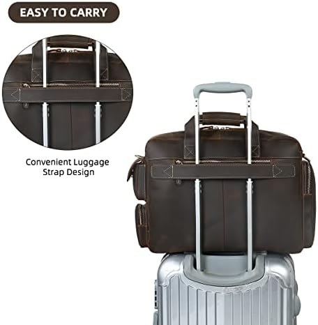 【Capacity】: 5 zippered pockets in front, can fit your small belongings, 2 zippered pockets at the top,padded laptop compartment fit 17″ Laptop, other two compartments can hold, for example, PAD, books, glasses, phone, wallet and clothes for short trips; this leather laptop briefcase with large capacity for all you needs.