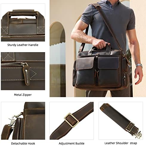 【High Quality Material】: Business laptop briefcase is made of high quality genuine cowhide leather material, fabric lining, zip closure. With vintage, luxury style, it is made to be durable over a long period of time. Messenger bag come with good quality metal zipper and hardware.