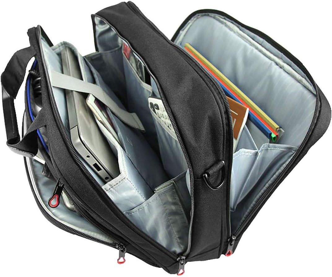 Roomy Compartment: Main compartment includes a 15.6″ TSA-Friendly padded laptop compartment, tablet pocket, and 2 additional panel pockets, multiple additional sections for organization. Front zippered compartment with organizational pockets for pens, keys, cell phone, and other items. Back compartment for documents.