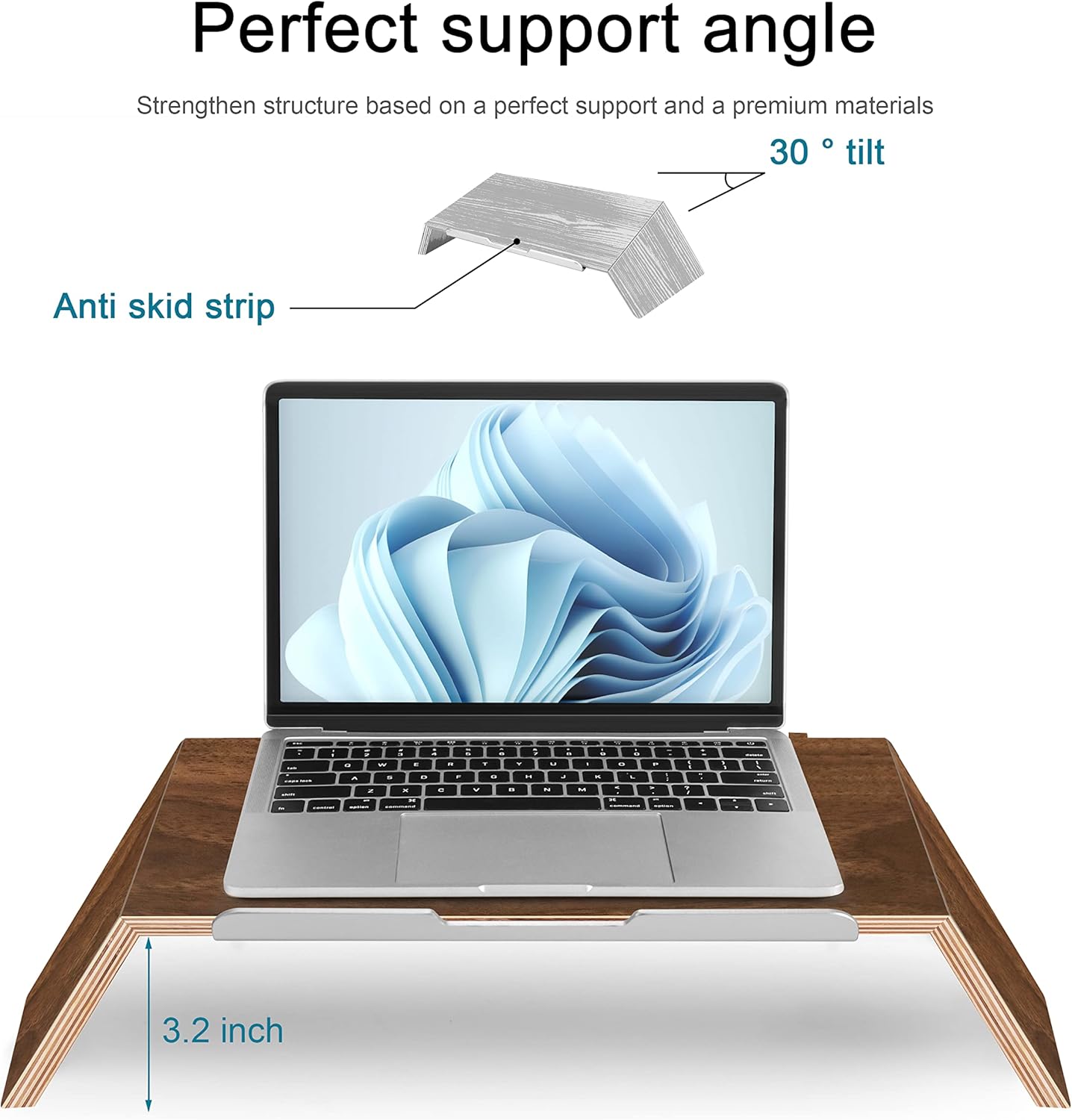 Laptop Stand Office Computer Riser – Wood Computer Riser, Ergonomic Laptops Elevator for Desk, Wooden Holder Compatible with MacBook Air Pro, Dell XPS, HP More 10-15.6” Notebook Laptops, Walnut