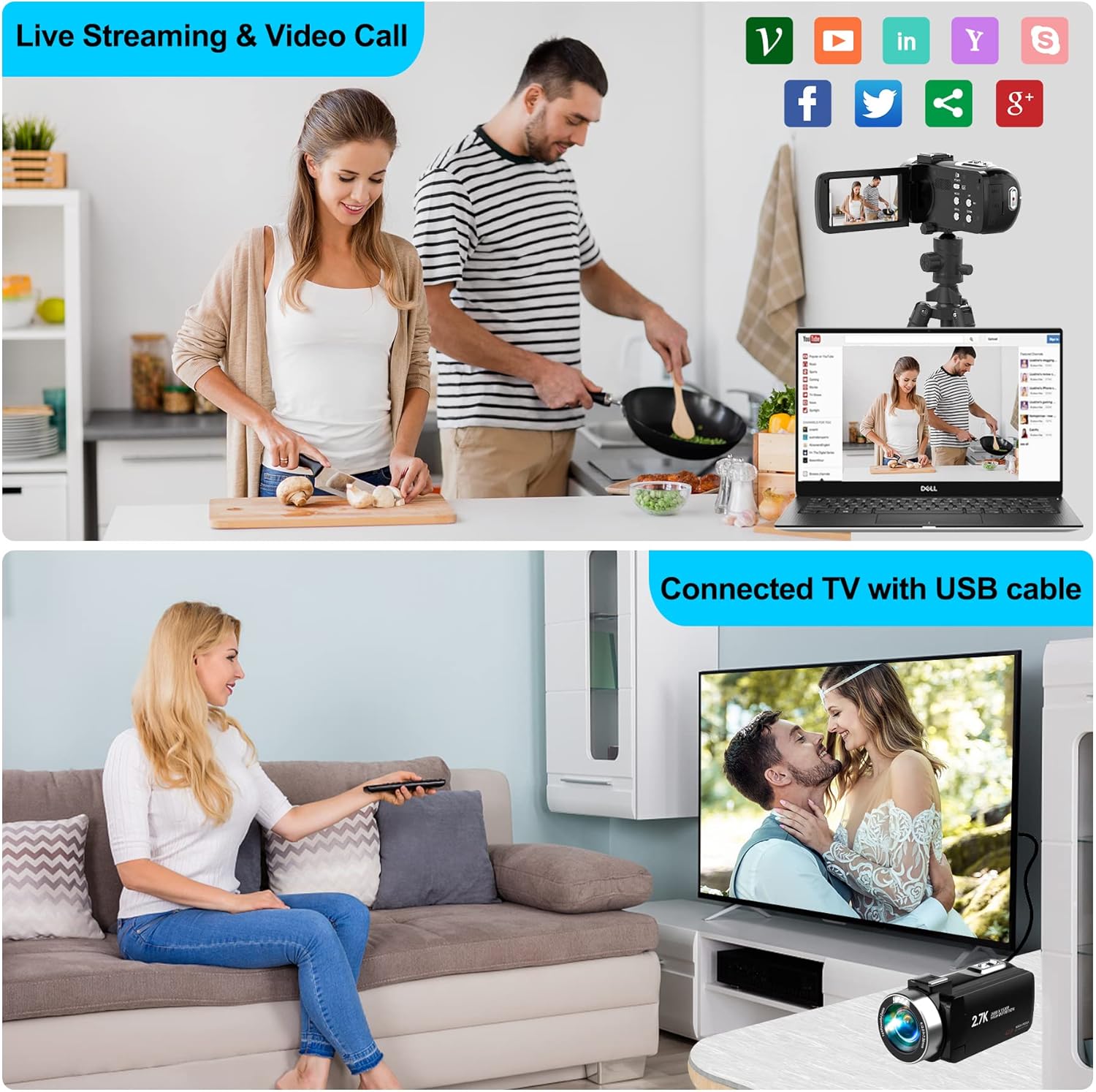 🎥【WEBCAM FUNCTION & FILL LIGHT】This video camera is equipped with fill light, You can shoot images or videos in low light condition or in the darkness; This vlogging camera can be used as a webcam for YouTube /Skype /TikTok /Facebook live streaming or make video calls with your family or friends; also you can connect the digital viedeo camera camcorders to TV via usb cable to playback HD photos or videos.