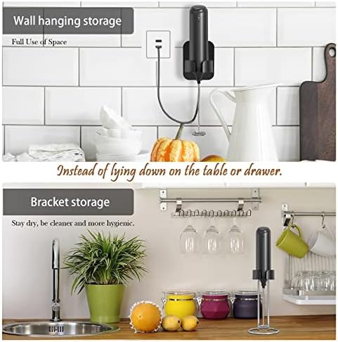 Rechargeable Milk Frother Handheld for Coffee, Electric Drink Mixer Wand with USB Wall Mounted Stand, Mini Whisk Hand Blender Foam Maker for Bloom Greens, Matcha, Frappe, Kitchen Gadgets
