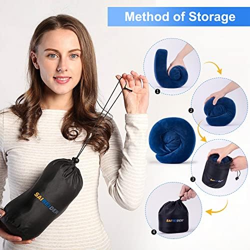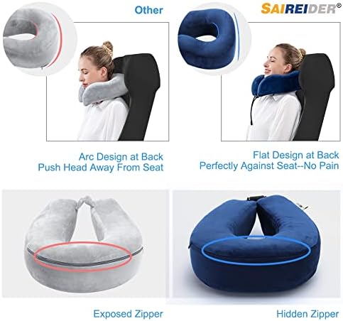 SAIREIDER Travel Pillow 100% Memory Foam Airplanes Neck Pillows -Prevent The Heads from Falling Forward Travel Neck Pillows with Sleep Mask and Earplugs (Navy Blue)