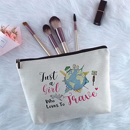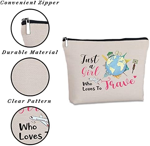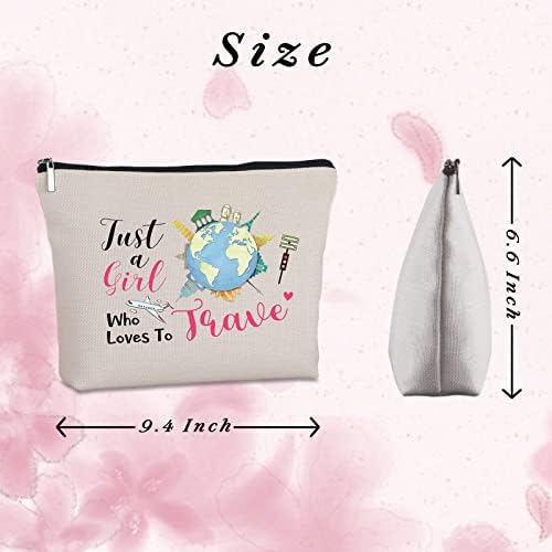 Travel Lover Gifts Zipper Makeup Bag Travel Cosmetic Bag Just a Girl Who Loves to Travel Unique Birthday Gifts for Women Girl Best Friends Sister