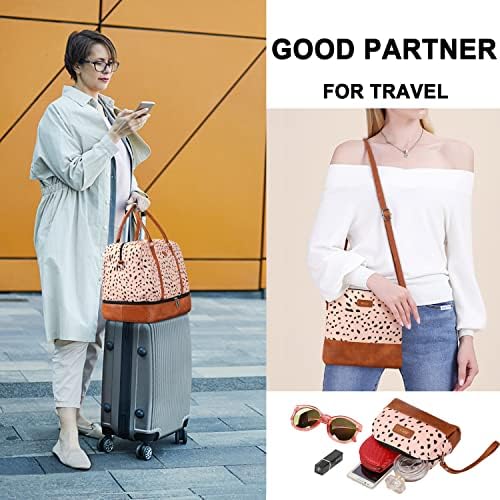 [2 ADJUSTABLE SHOULDER STRAPS] Womens weekender travel bag set comes with 2 shoulder straps (thin/wide), makes travel easier. The wide is padded detachable, combined with the large duffel bag, which can be carried on one shoulder or cross-body. The thin is combined with the messenger bag, used for daily use, storing keys, cash, bank cards, mobile phones, etc.