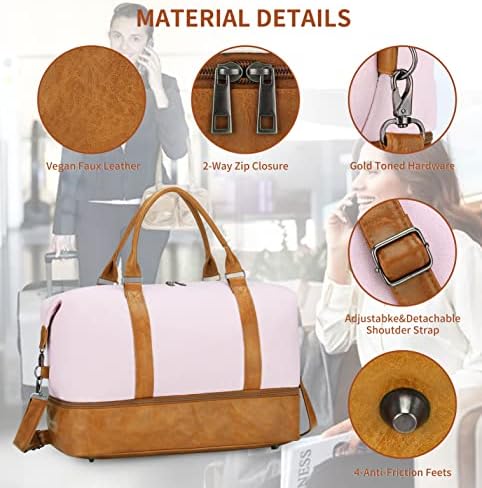 Weekender Bag for Women Weekend Duffle Bag Travel Bags 3-4 day trip Overnight Bag/Daily use/Birthday gift(Pinkcanvas)