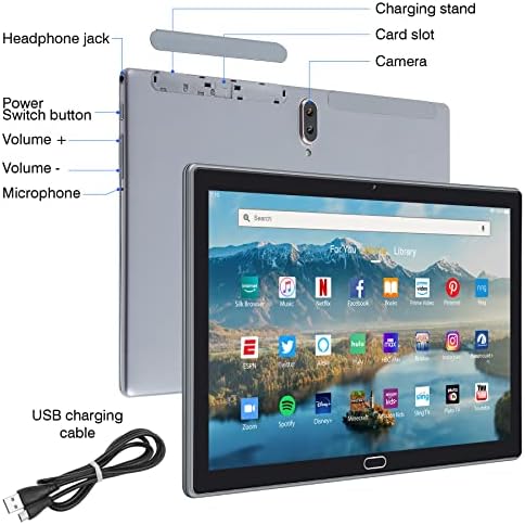 ZaoFePu Android Tablet 10 Inch WiFi HD Display Andorid 10.0GMS Tablets RAM 2+32GB, ROM 800 x 1280, Camera 500w, Type-c Charging Port -Silver Grey N10